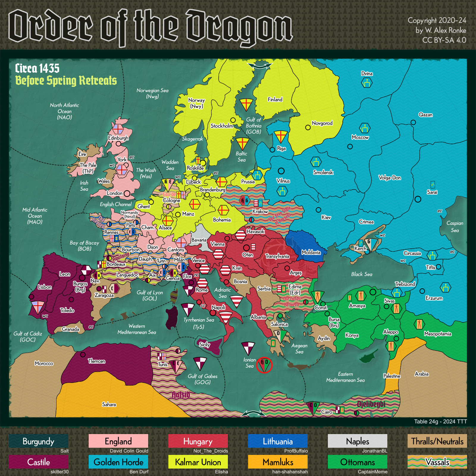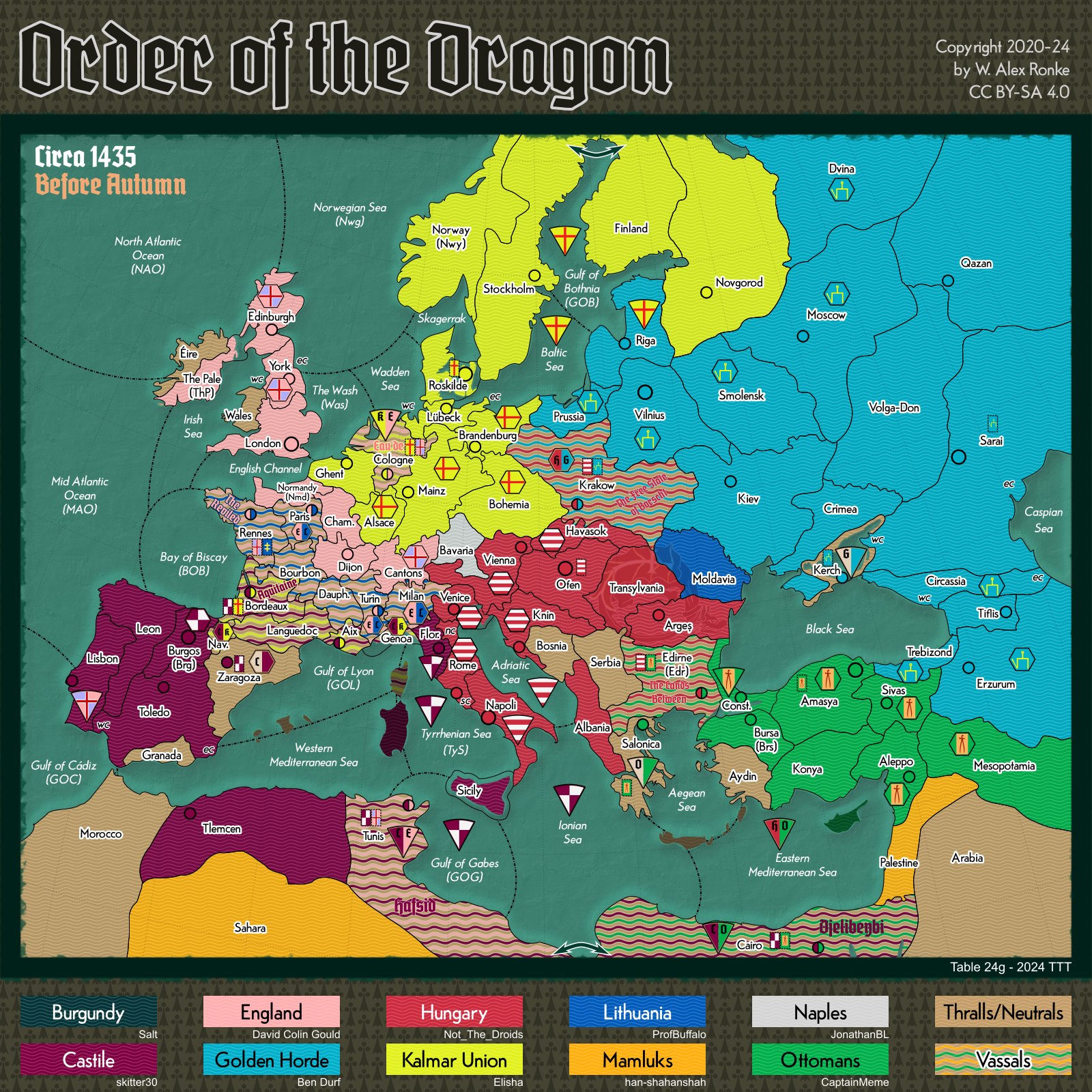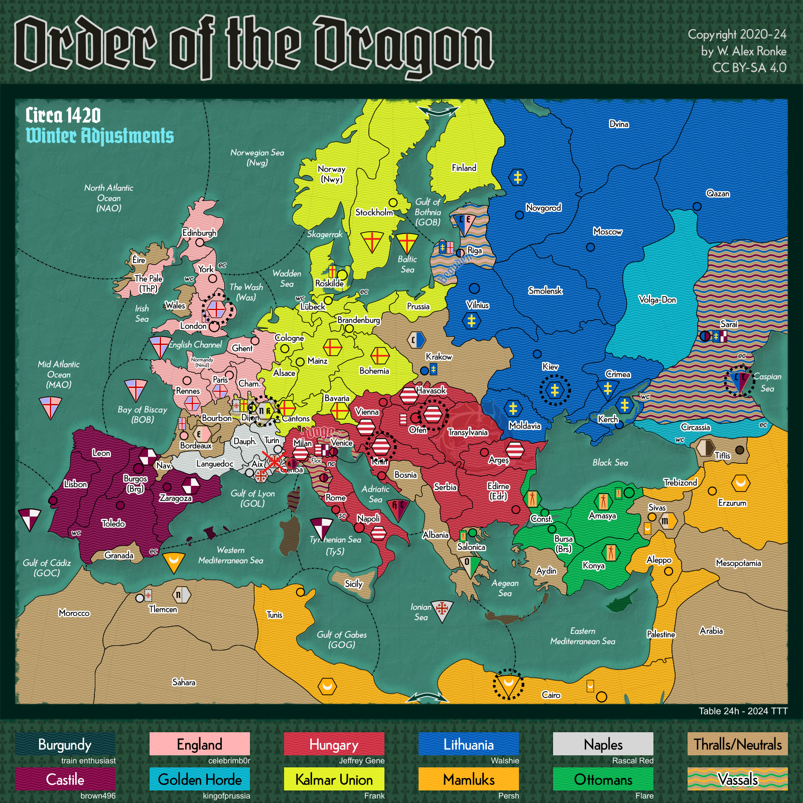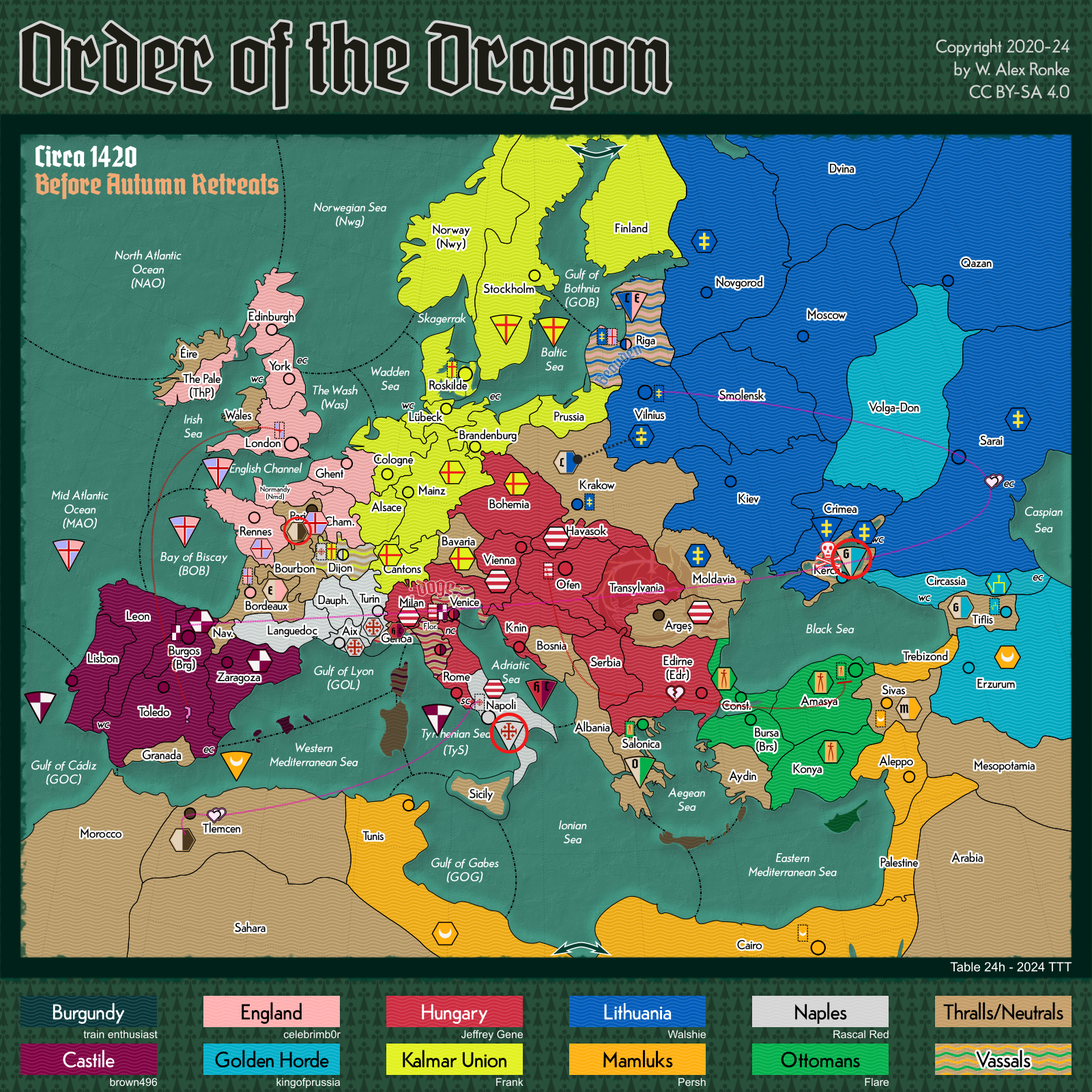 - Order of the Dragon, a 10-player variant set in Europe at the beginning of the 15th century