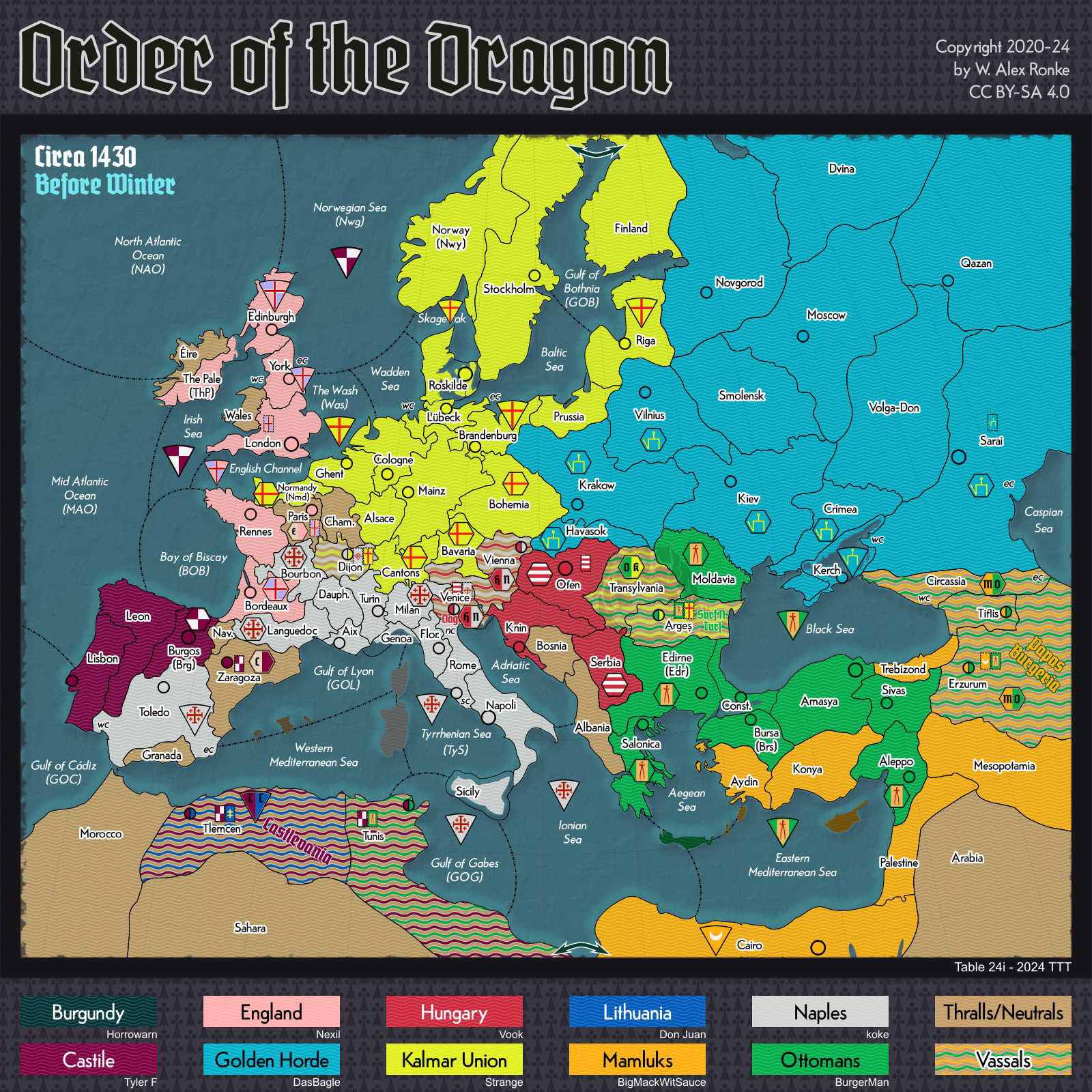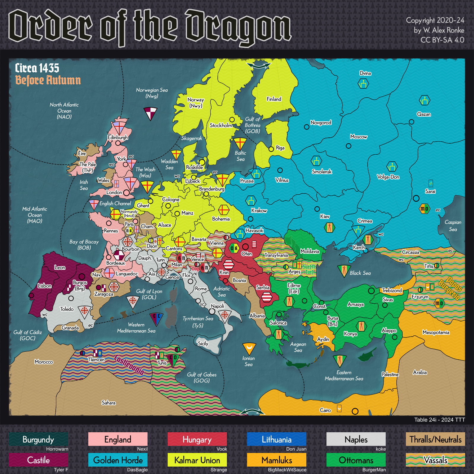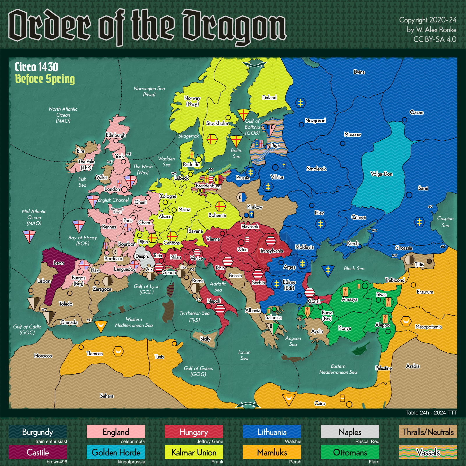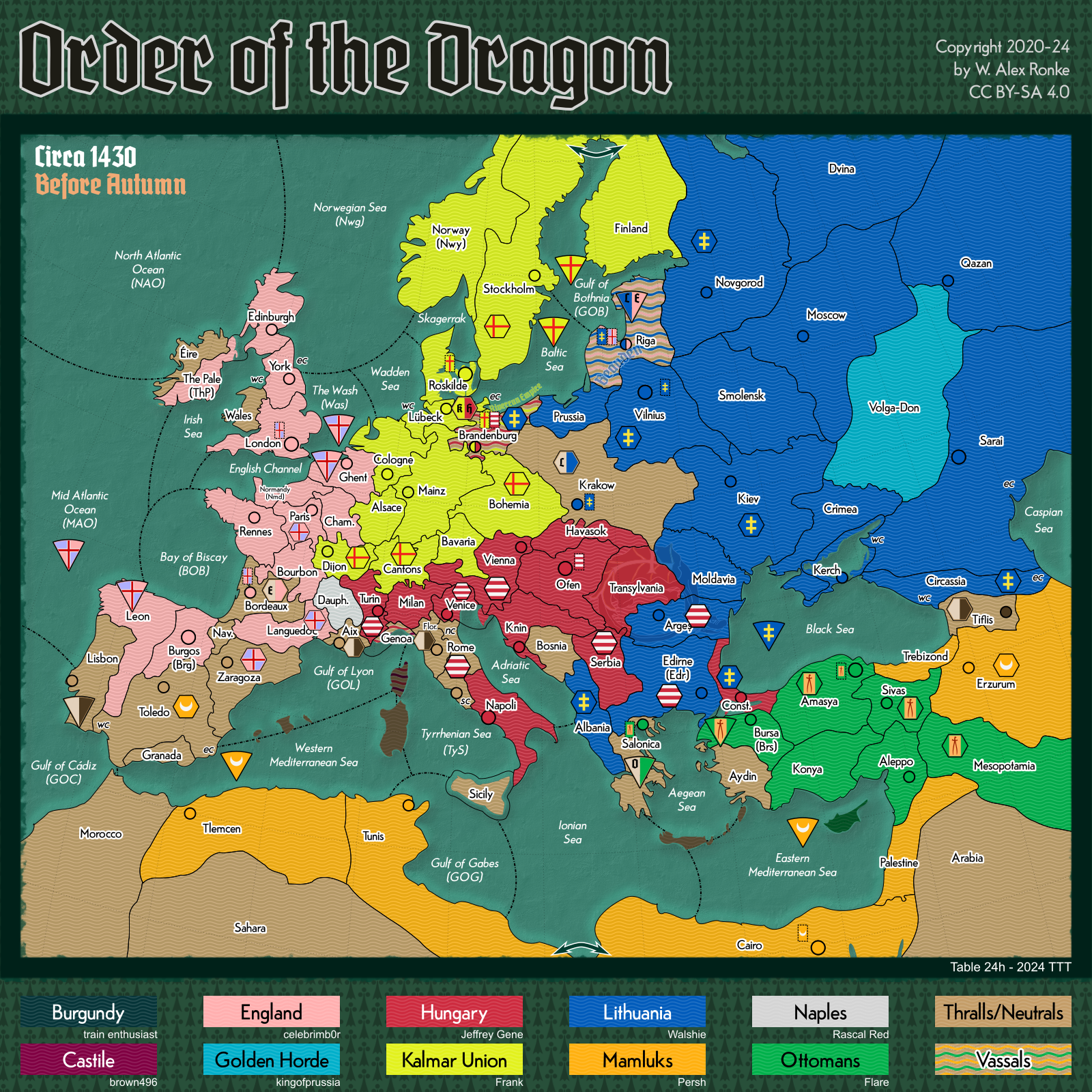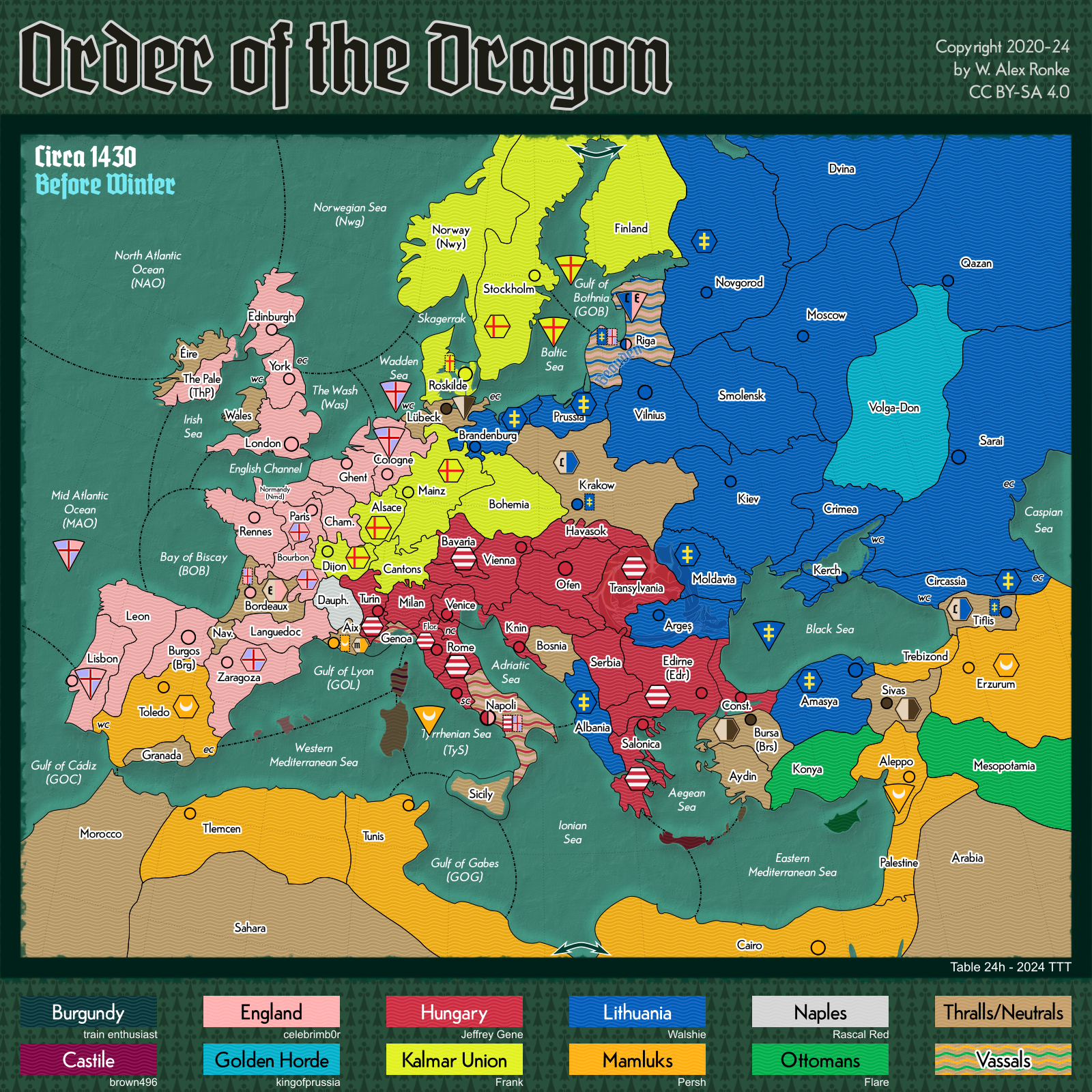 - Order of the Dragon, a 10-player variant set in Europe at the beginning of the 15th century