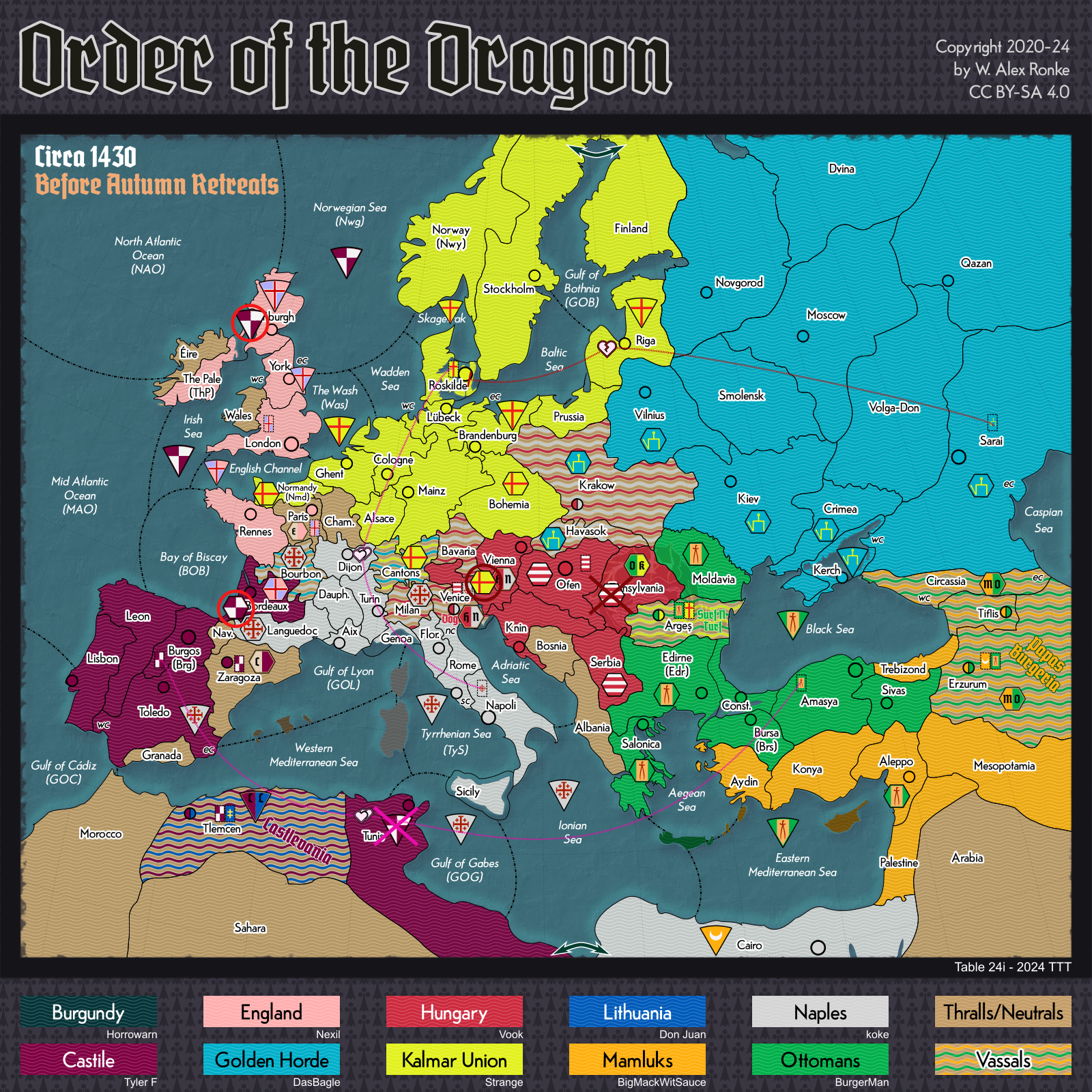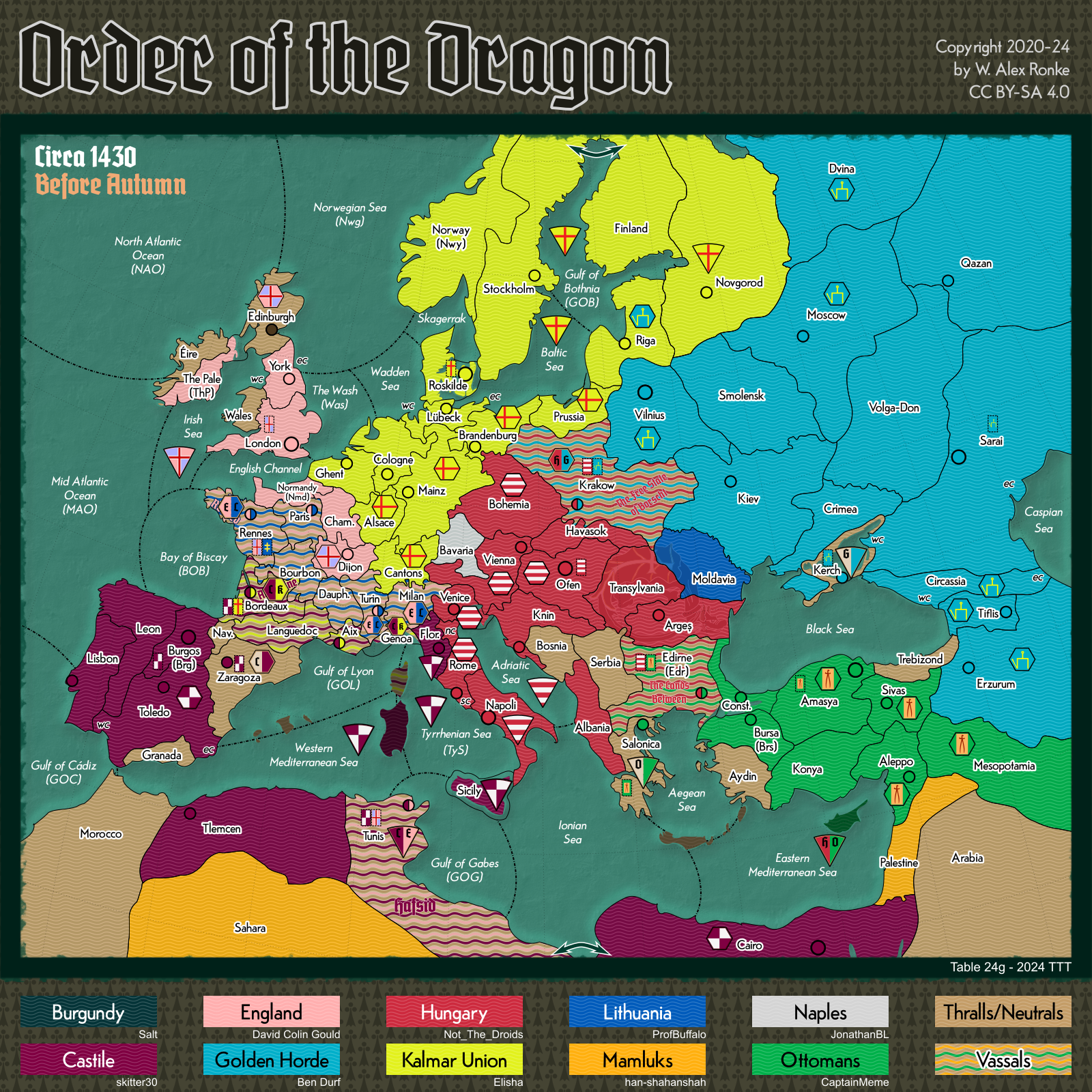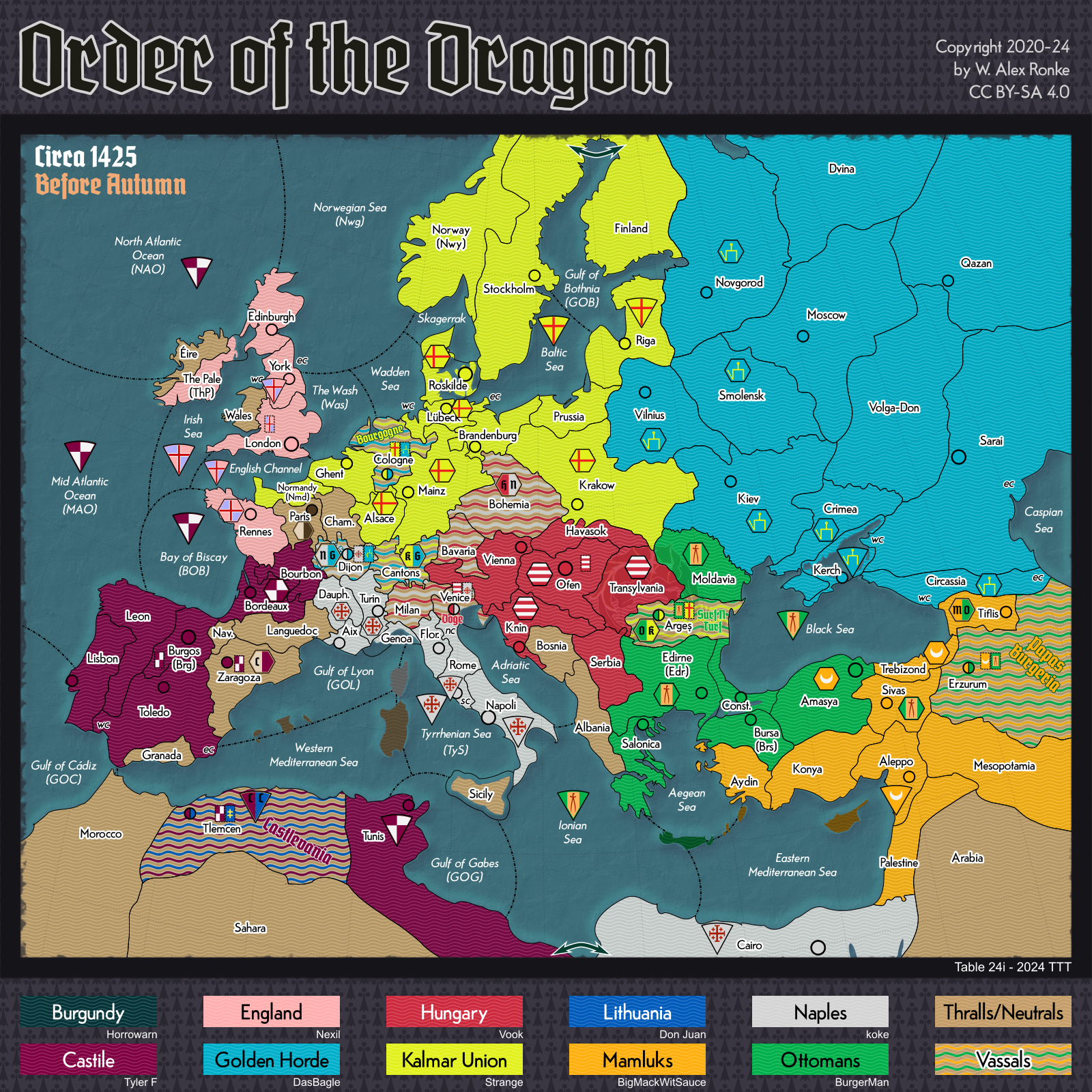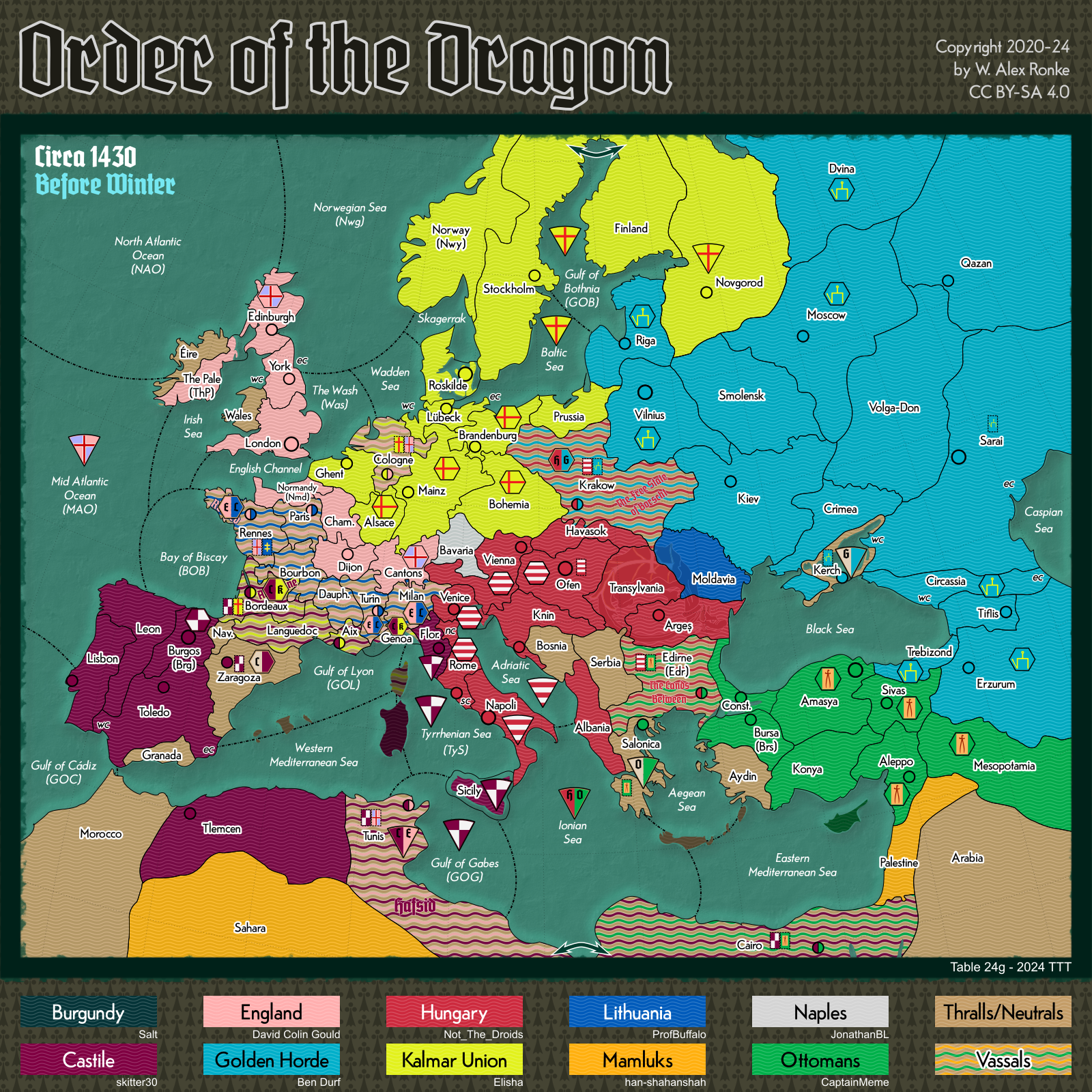 - Order of the Dragon, a 10-player variant set in Europe at the beginning of the 15th century