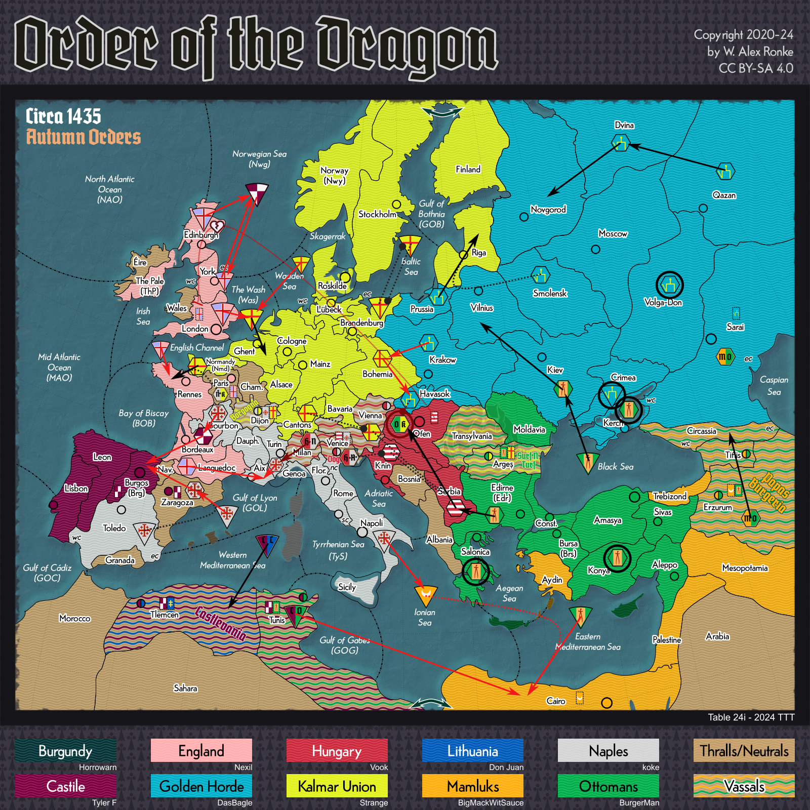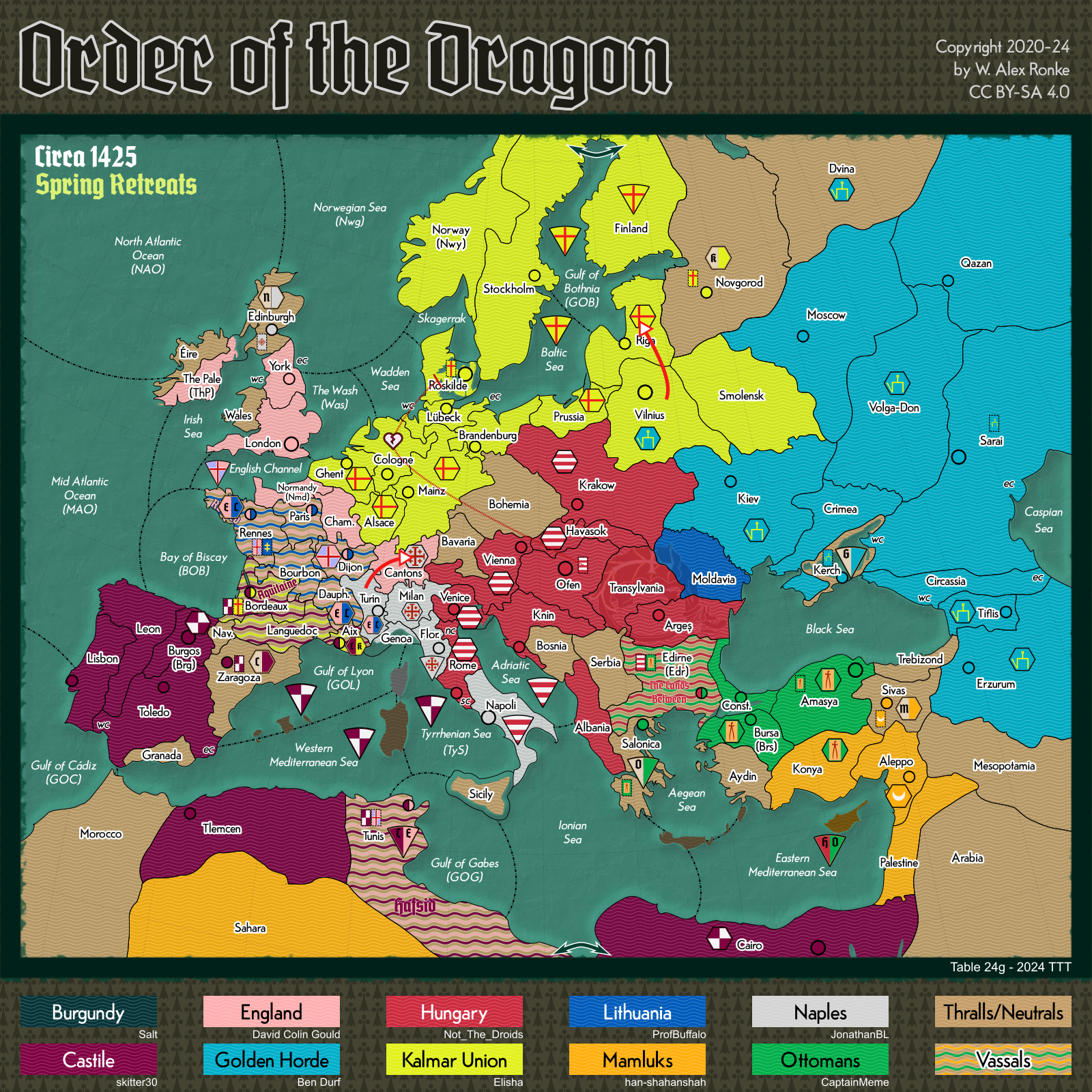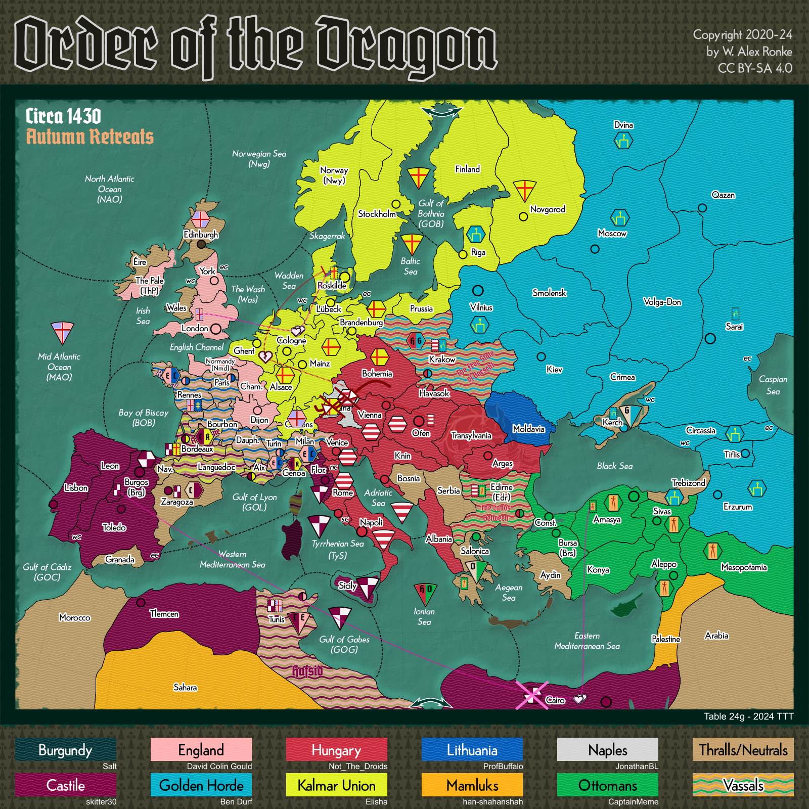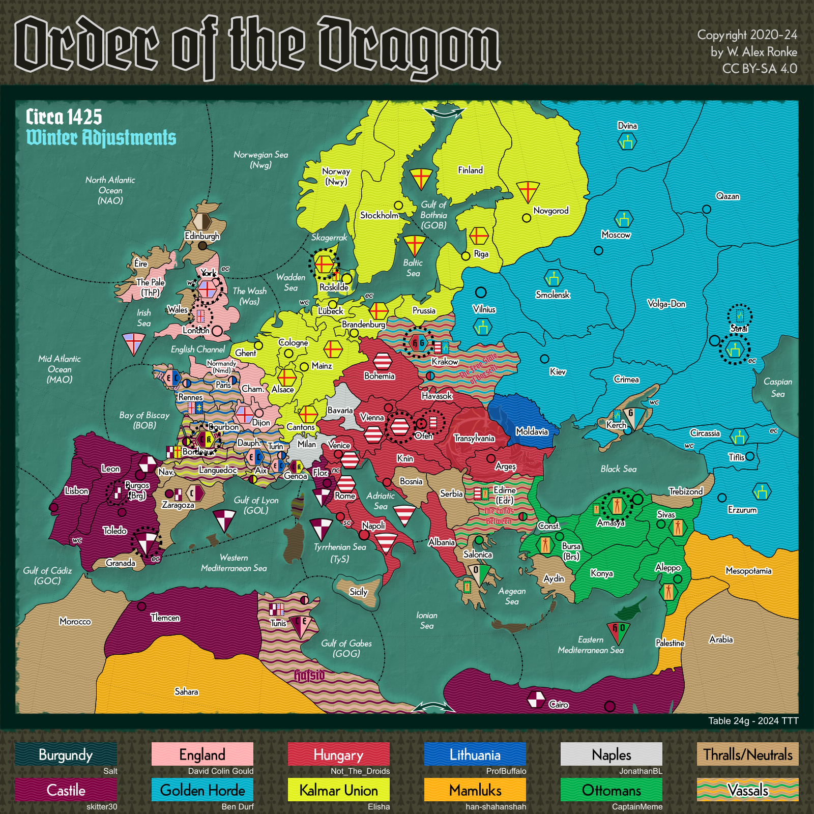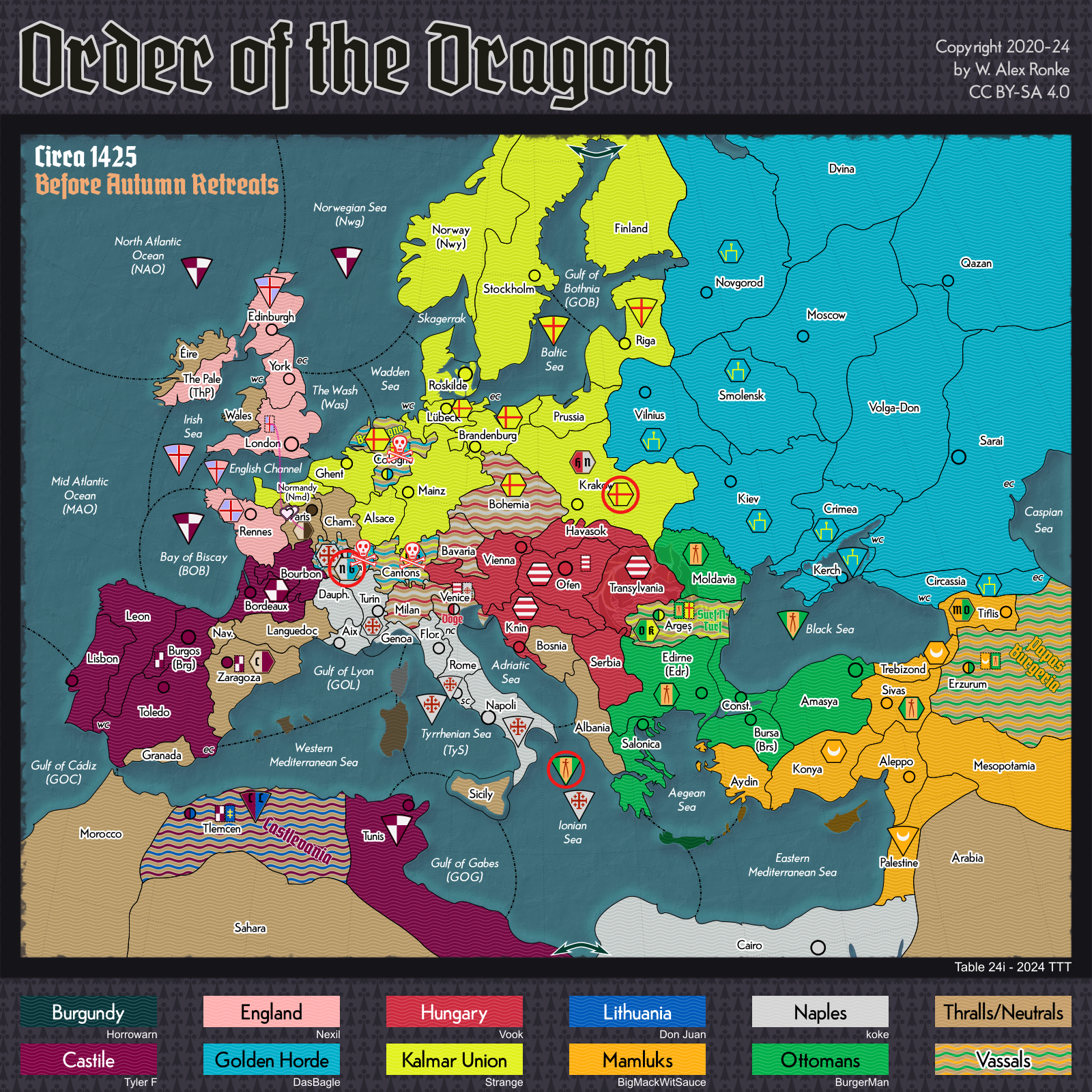- Order of the Dragon, a 10-player variant set in Europe at the beginning of the 15th century