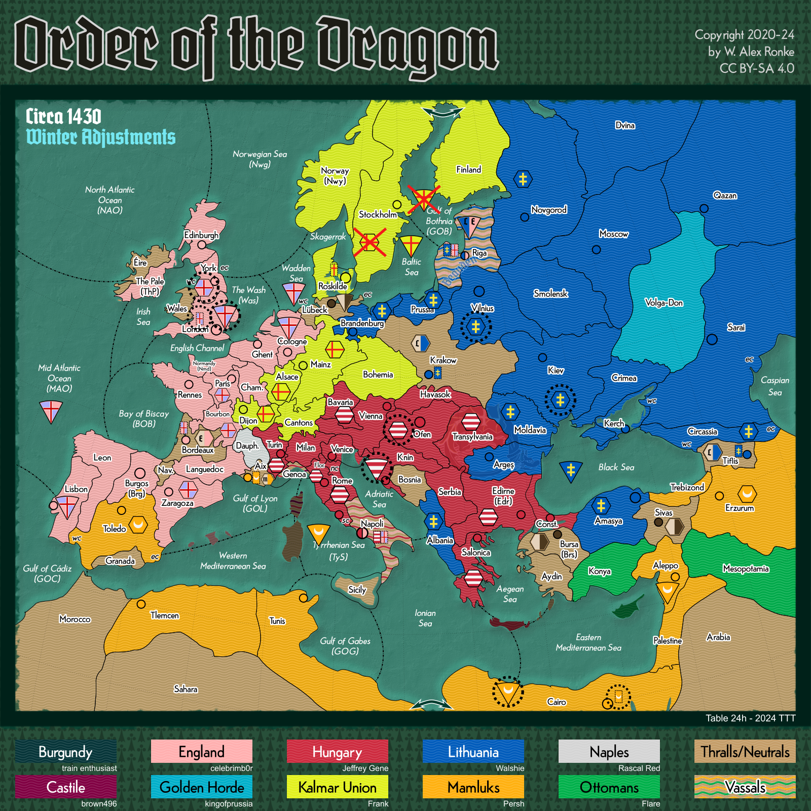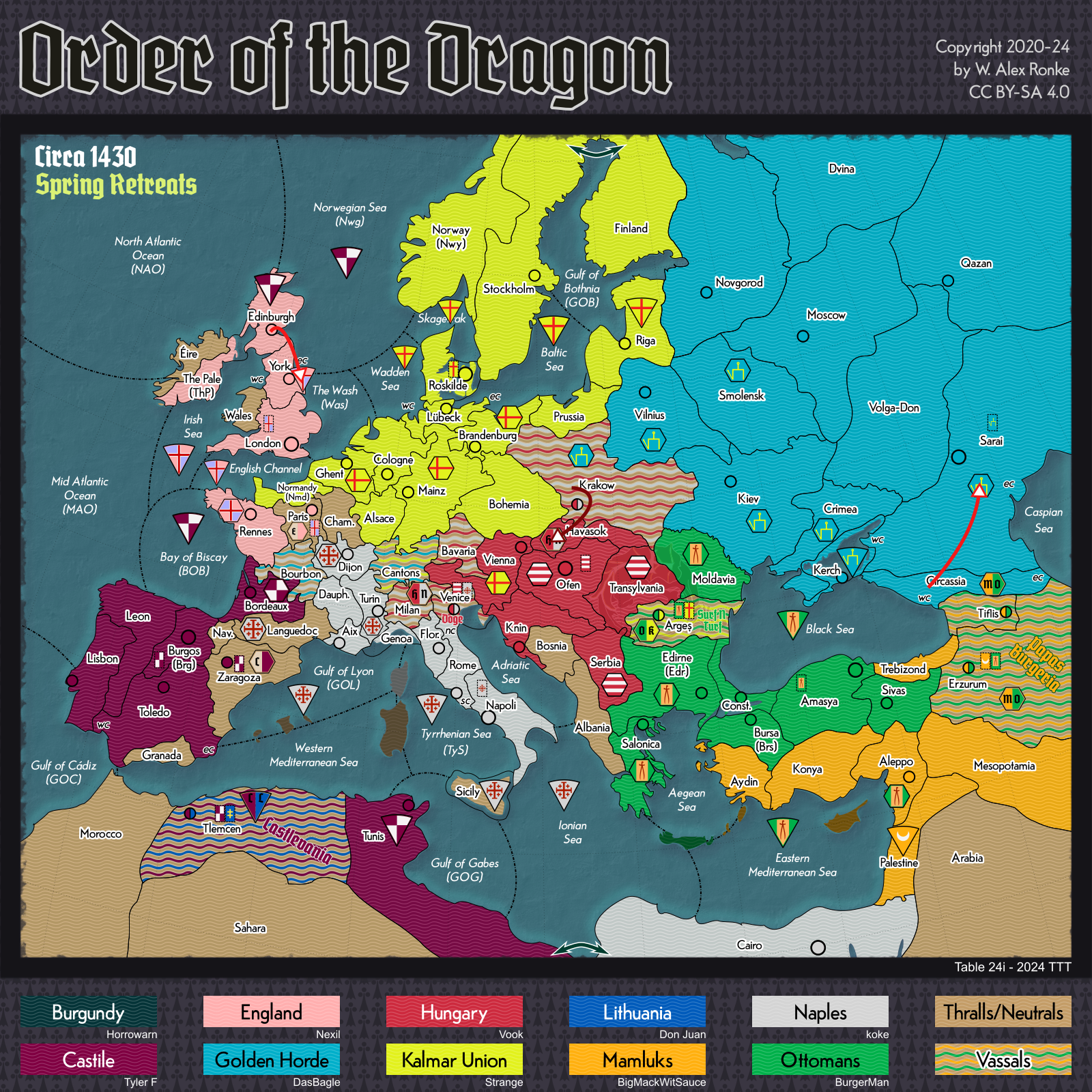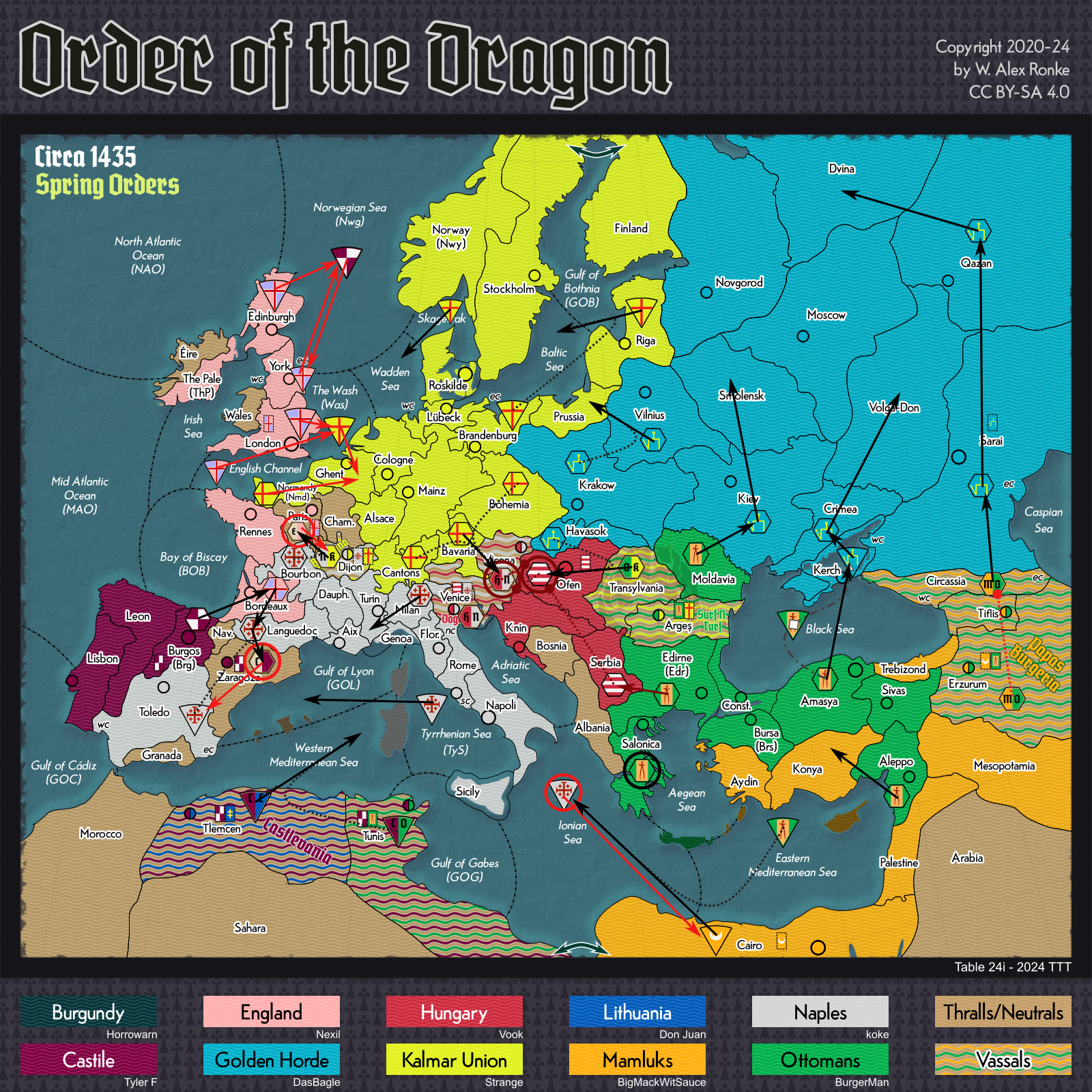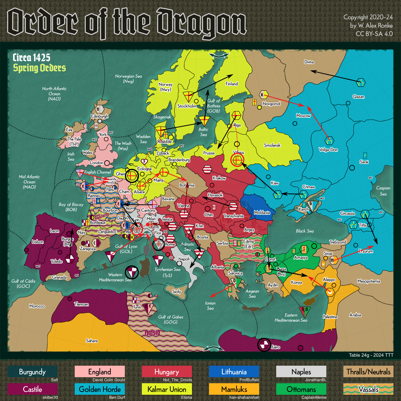 - Order of the Dragon, a 10-player variant set in Europe at the beginning of the 15th century