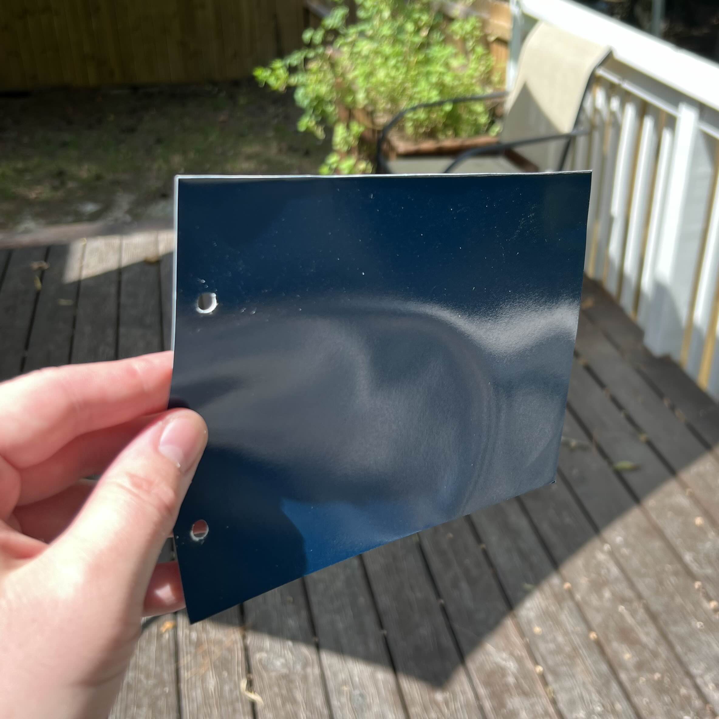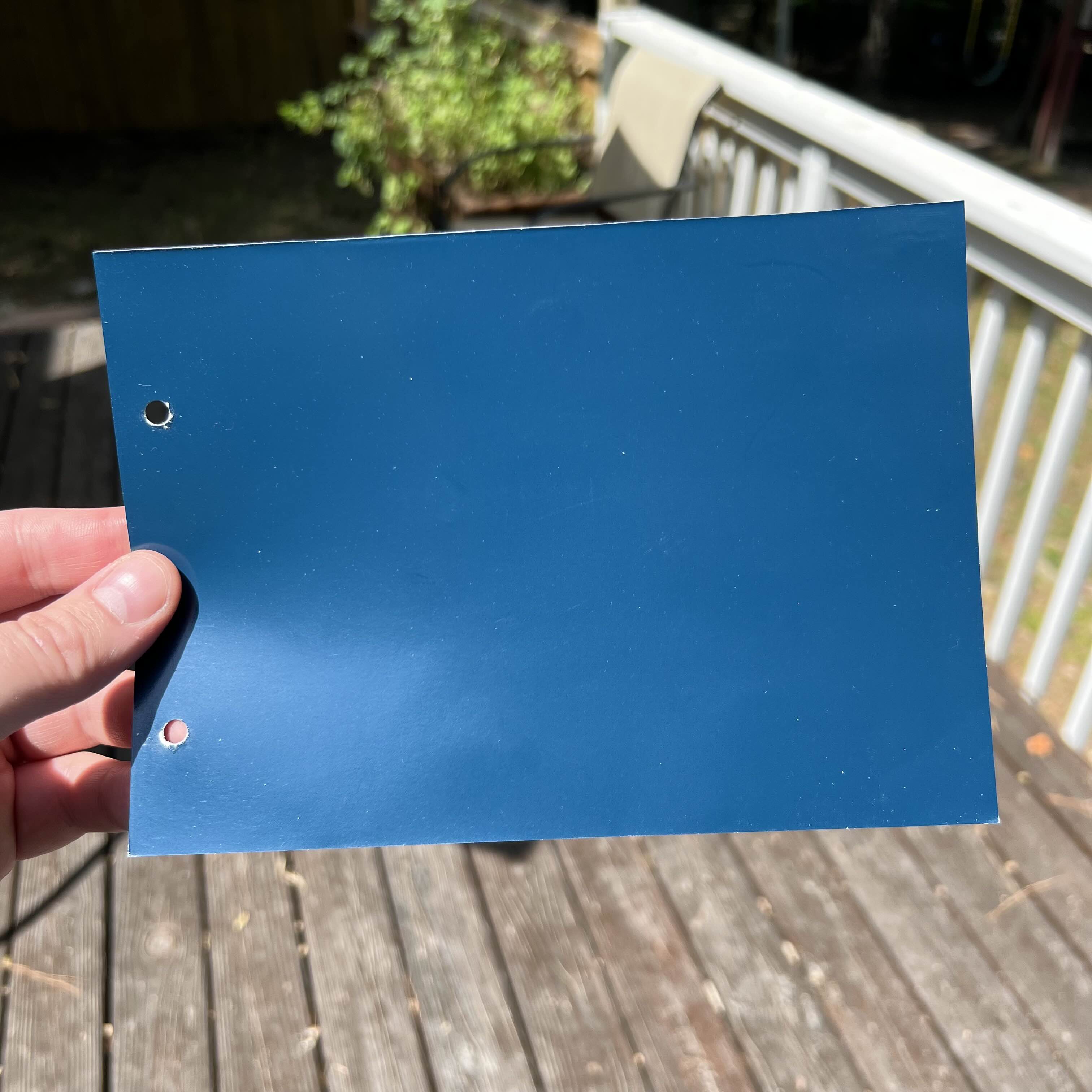 The first photo shows the RAL swatch using standardized metered lighting and color correction for sRGB representation (thanks Beesley!). The rest are just ordinary iPhone photos of a large sheet of this RAL in and around my house. I have applied no filtering or color correction to these other than what the iOS camera might perform by default. I hope these photos can provide a more realistic notion of how this color can look in different settings.