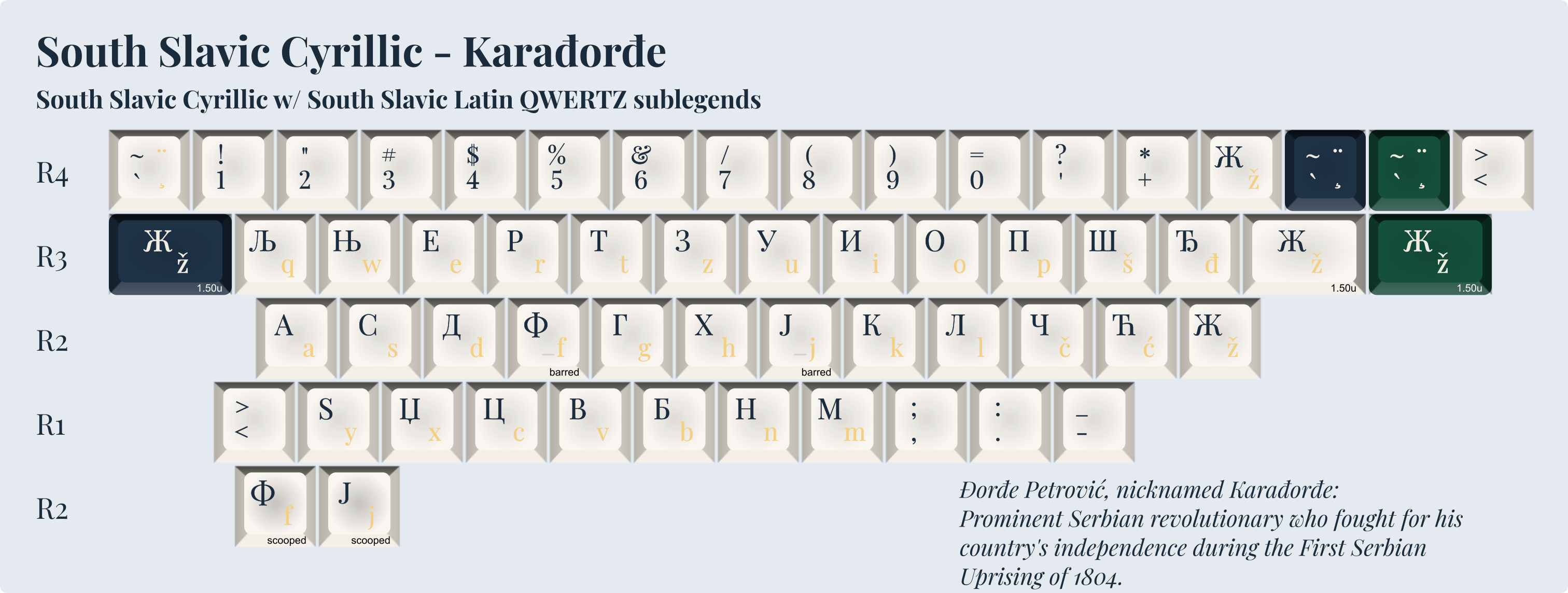 - Thanks to Konstantin for all the advice on the particulars of punctuation positioning in legends as well as for drawing the correct Cyrillic J for the Karađorđe alpha kit.