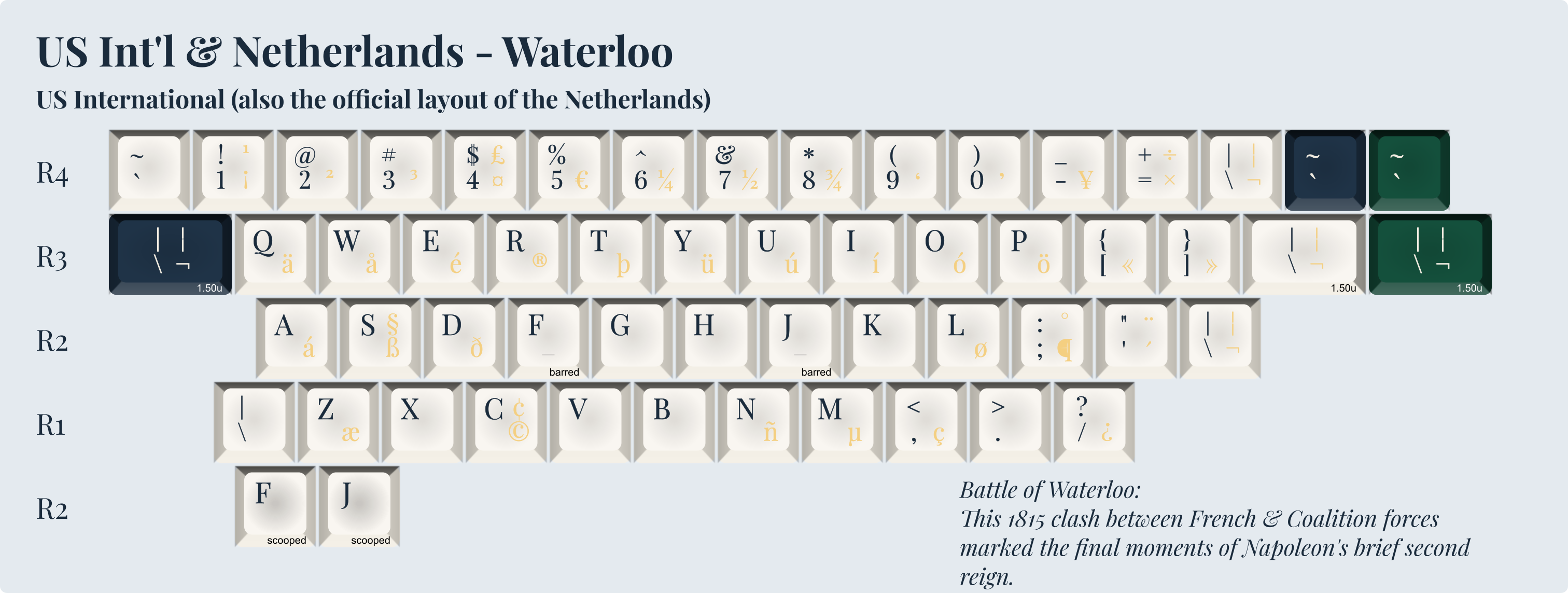 KAT Napoleonic is here to make sure that you can get localized keycaps for both major formats, providing options for compatibility for ANSI & ISO key arrangements for all locales supported. With a bit of creativity and a configuration tool like QMK, you can use KAT Napoleonic to bring your language to your board regardless of the style of Enter key it normally supports.